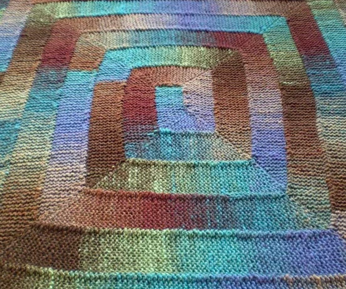The lovely colour-work waistcoat I showed you last week, or was it the week before?, anyway, the green waistcoat with the yellow flowers, has had to be ripped back. When I had joined the shoulder seams I thought I’d better try it on before I cut the front steek. Too tight. Much too tight. And I’d swatched and knit one size up from normal for ease, and everything. So, in a fit of pique I ripped the whole lot back, rewound the yarn and have put it away for later in the year before I try again. Not having much luck with garments—the massive cardigan and now the tiny waistcoat. Grrr. I have to have some knitting on the go so I’ve started a 10 stitch blanket with the not very nice yarn that was gifted to me last week. I thought that even in its ghastliness it might make a blanket for the garden seats. So, to make it more interesting I am knitting it as a temperature blanket (that’s with colours organised as to the noonday temperature everyday.) Obviously I have to catch up to March a bit but it’s working out okay. The colours in the gifted wool are not brilliant but there’s enough to make 3 degree gradations. To be honest it looks pretty bad, but I shall carry on regardless, as a blanket that will only be for outside use it doesn’t have to be a work of art. And it won’t be. Also, because the yarn is quite thick, somewhere around aran/heavy worsted weight, that ridge that you get on 10 stitch blankets is very prominent and horrible. But I DON”T CARE. In the spirit of ‘don’t look a gift horse in the mouth’ it WILL be a garden blanket. I won’t photograph it out of a sense of shame. If you are wondering how I know the noon-day temperatures from the beginning of the year, well, shoot me now, I asked Chatgpt. And it gave me a nice easy table of every day for the two months. So, it has its uses. If you want to knit your own 10 stitch blanket, the pattern is by Frankie Brown, it is free and available on Ravelry here. This is what a decent one looks like.