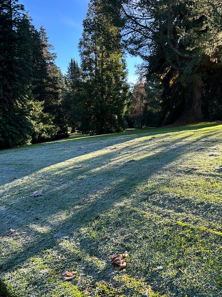 The gorgeous weather also produced this combination of frost, shadows and sunlight; and these ghostly impressions of leaves on the path, which I LOVED..